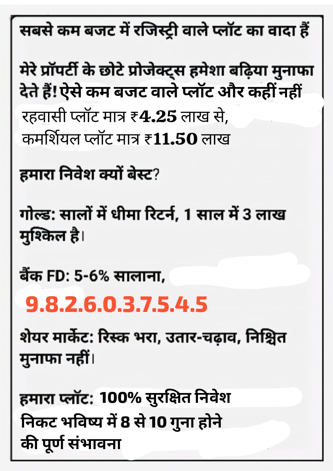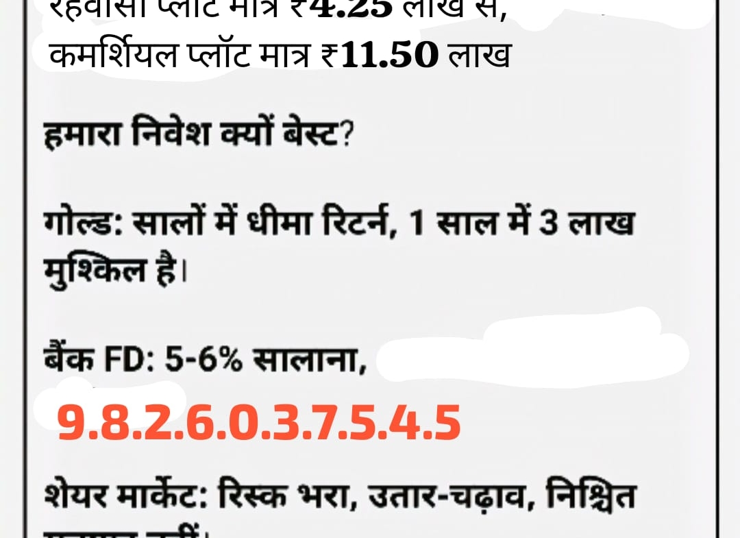 सम्पूर्ण जानकारी और उचित निवेश करने के लिए आप हमारे ऑफिस (PU4, C21 माल के पीछे) में सादर आमंत्रित है संपर्क करे